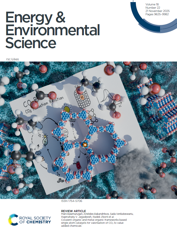 Our recent review on MOFs and COFs based single atom catalysts for valorisation of CO2, has been featured as a cover art in RSC Energy and Environmental Science.